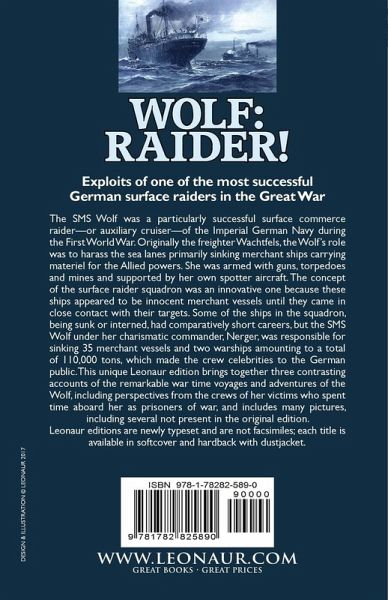 Exploits of one of the most successful German surface raiders in the Great War The SMS Wolf was a particularly successful surface commerce raider—or auxiliary cruiser—of the Imperial German Navy during the First World War. Originally the freighter Wachtfels, the Wolf’s role was to harass the sea lanes primarily sinking merchant ships carrying materiel for the Allied powers. She was armed with guns, torpedoes and mines and supported by her own spotter aircraft. The concept of the surface raider squadron was an innovative one because these ships appeared to be innocent merchant vessels until they came in close contact with their targets. Some of the ships in the squadron, being sunk or interned, had comparatively short careers, but the SMS Wolf under her charismatic commander, Nerger, was responsible for sinking 35 merchant vessels and two warships amounting to a total of 110,000 tons, which made the crew celebrities to the German public. This unique Leonaur edition brings together three contrasting accounts of the remarkable war time voyages and adventures of the Wolf, including perspectives from the crews of her victims who spent time aboard her as prisoners of war, and includes many pictures, including several not present in the original edition. Leonaur editions are newly typeset and are not facsimiles; each title is available in softcover and hardback with dustjacket.