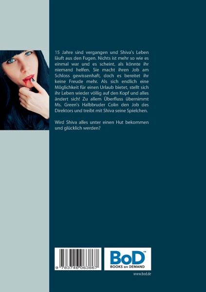 15 Jahre sind vergangen und Shiva's Leben läuft aus den Fugen. Nichts ist mehr so wie es einmal war, und es scheint, als könnte ihr niemand helfen. Sie macht ihren Job am Schloss gewissenhaft, doch es bereitet ihr keine Freude mehr. Als sich endlich eine Möglichkeit für einen Urlaub bietet, stellt sich ihr Leben wieder völlig auf den Kopf, und alles ändert sich! Zu allem Überfluss übernimmt Ms. Green's Halbbruder Colin den Job des Direktors und treibt mit Shiva seine Spielchen.Wird Shiva alles unter einen Hut bekommen und glücklich werden?