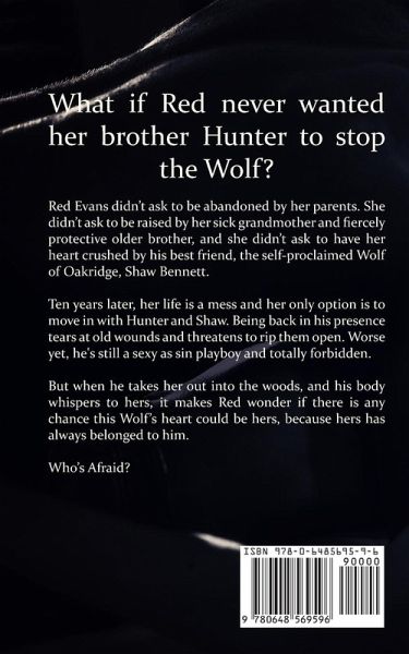 What if Red never wanted her brother Hunter to stop the Wolf? Red Evans didn't ask to be abandoned by her parents. She didn't ask to be raised by her sick grandmother and fiercely protective older brother, and she didn't ask to have her heart crushed by his best friend, the self-proclaimed Wolf of Oakridge, Shaw Bennett Ten years later, her life is a mess and her only option is to move in with Hunter and Shaw. Being back in his presence tears at old wounds and threatens to rip them open. Worse yet, he's still a sexy as sin playboy and totally forbidden. But when he takes her out in the woods, and his body whispers to hers, it makes Red wonder if there is any chance this Wolf's heart could be hers, because hers has always belonged to him. Who's Afraid?