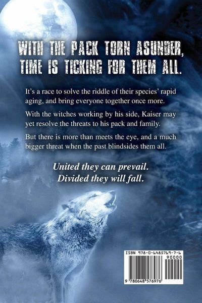With the pack torn asunder, time is ticking for them all. It's a race to solve the riddle of their species' rapid aging, and bring everyone together once more. With the witches working by his side, Kaiser may yet resolve the threats to his pack and family. But there is more than meets the eye, and a much bigger threat when the past blindsides them all. United they can prevail, but divided they will fall.