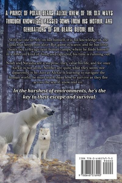 A prince of polar bears, Alexie knew of the old ways through knowledge passed down from his mother, and generations of she-bears before her. With no one to rely on but himself, it is his knowledge of the land that keeps him alive. But game is scarce, and he has little choice but to forage near human camps, where he finds himself in a different kind of bind, and captured, his time is running out. Noah and Natasha are a surprise, they value his life, and for once Alexie is not alone. Neither are quite what they seem, nor apparently, is he. Just as Alexie is learning to navigate the human world, he must teach them how to survive as they flee across the sea of snow and ice. In the harshest of environments, he's the key to their escape and survival.