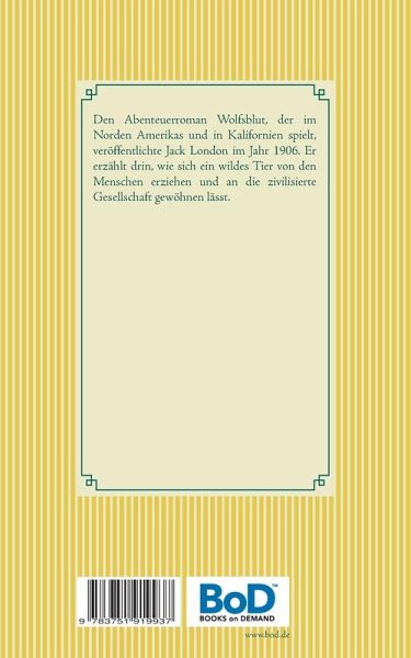 Den Abenteuerroman Wolfsblut, der in, Norden Amerikas und in Kalifornien spielt, veröffentlichte Jack London im Jahr 1906. Er erzählt drin, wie sich ein wildes Tier von den Menschen erziehen und an die zivilisierte Gesellschaft gewöhnen lässt.