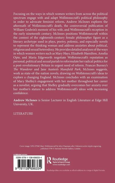 Focusing on the ways in which women writers from across the political spectrum engage with and adapt Wollstonecraft's political philosophy in order to advocate feminist reform, Andrew McInnes explores the aftermath of Wollstonecraft's death, the controversial publication of William Godwin's memoir of his wife, and Wollstonecraft's reception in the early nineteenth century. McInnes positions Wollstonecraft within the context of the eighteenth-century female philosopher figure as a literary archetype used in plays, poetry, polemic, and especially novels to represent the thinking woman and address anxieties about political, religious and sexual heterodoxy.