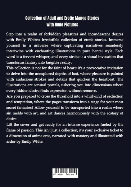 Indulge in an Unforgettable Journey of Passion and Temptation with Emily White's Erotic Masterpiece!Step into a captivating world where seduction knows no bounds in Emily White's latest collection of scintillating erotic stories, enriched with enchanting hentai illustrations. Immerse yourself in a universe where each word is a whispered promise, and every brushstroke is a visual enchantment that brings fantasies to life in pure hentai style.This collection is a daring invitation to explore the uncharted depths of desire, where pleasure unfolds with audacious strokes and details that will quicken your heartbeat. The carefully crafted hentai illustrations serve as sensuous portals, transporting you into dimensions where every hidden fantasy finds unabashed expression.What to Expect:- A Fusion of Literary Mastery and Sensual Artistry- Explicit and Alluring Hentai Illustrations- Stories That Explore the Boundaries of Lust and Fantasy- A Whirlwind of Seduction and TemptationThis isn'tjust a collection; it's your exclusive ticket to a dimension of hentai eros, meticulously narrated and ardently illustrated by Emily White. Lift the cover and prepare for an intense experience fueled by the flame of passion.Caution: This Collection is Not for the Faint of Heart. Are You Ready to Cross the Threshold?