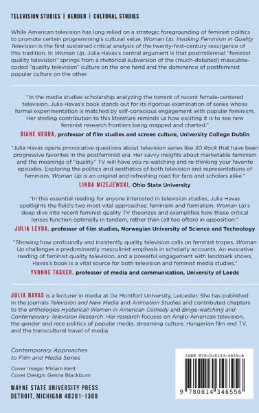 While American television has long relied on a strategic foregrounding of feminist politics to promote certain programming's cultural value, Woman Up: Invoking Feminism in Quality Television is the first sustained critical analysis of the twenty-first-century resurgence of this tradition. In Woman Up, Julia Havas'scentral argument is that postmillennial feminist quality television springs from a rhetorical subversion of the (much-debated) masculine-coded quality television culture on the one hand and the dominance of postfeminist popular culture on the other. Postmillennial quality television culture promotes the idea of aesthetic-generic hierarchies among different types of scripted programming. Its development has facilitated evaluative academic analyses of television texts based on aesthetic merit, producing a corpus of scholarship devoted to pinpointing where value resides in shows considered worthy of discussion. Other strands of television scholarship have criticized this approach for sidestepping the gendered and classed processes of canonization informing the phenomenon. Woman Up intervenes in this debate by reevaluating such approaches and insisting that rather than further fostering or critiquing already prominent processes of canonization, there is a need to interrogate the cultural forces underlying them. Via detailed analyses of four TV programs emerging in the early period of the feminist quality TV trend-30 Rock (2006-13), Parks and Recreation (2009-15), The Good Wife (2009-16), and Orange Is the New Black (2013-19)-Woman Up demonstrates that such series mediate their cultural significance by combining formal aesthetic exceptionalism and a politicized rhetoric around a problematic postfeminism, thus linking ideals of political and aesthetic value. Woman Up will most appeal to students and scholars of cinema and media studies, feminist media studies, television studies, and cultural studies.