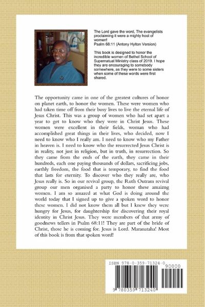 This is a book of poems and reflections on the biblical woman. It is spontaneous out flowing of the Spirit of Christ living in the author. The book was conceived after the writer had an opportunity to honor the women of his revival group in Bethel School of Supernatural Ministry class of 2019. He was impressed with the dedication many women had shown in leaving their homes and jobs to find Christ in them the hope of glory. There are other poems of the writer in the book, these cast vision for the future of mankind.