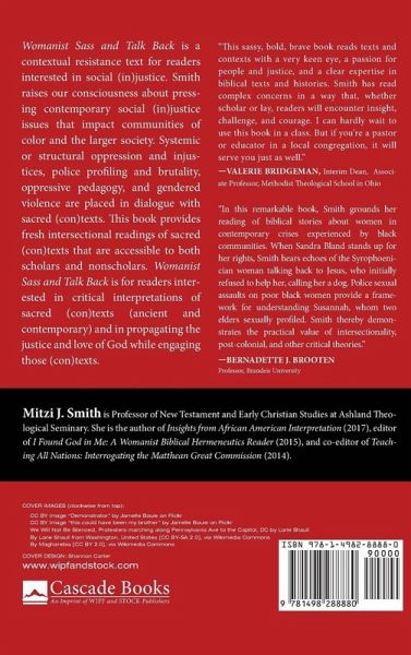 Womanist Sass and Talk Back is a contextual resistance text for readers interested in social (in)justice. Smith raises our consciousness about pressing contemporary social (in)justice issues that impact communities of color and the larger society. Systemic or structural oppression and injustices, police profiling and brutality, oppressive pedagogy, and gendered violence are placed in dialogue with sacred (con)texts. This book provides fresh intersectional readings of sacred (con)texts that are accessible to both scholars and nonscholars. Womanist Sass and Talk Back is for readers interested in critical interpretations of sacred (con)texts (ancient and contemporary) and in propagating the justice and love of God while engaging those (con)texts.