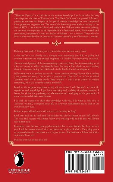 "Woman's Mystery" is a book about the ancient knowledge loss. It includes the long time forgotten doctrine of Russian Vedi. The Slavic Vedi were the powerful diviners, predictors, teachers and keepers of the special kinship knowledge that was transported from generation to generation. The base of the knowledge was made according to the laws of RITA - the purity of blood and kinship. For Vedi the main value was a family, the one who was supposed to be responsible for a family and home, future wealth and generations, happiness of a man and health of children - was a woman. That's why this book can be considered to be devoted to the most beautiful part of humanity - women.