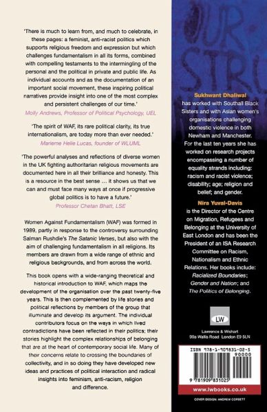 2014 is WAF's 25th anniversary year, and this book maps the development of the organisation over the past 25 years, through the life stories and political reflections of some of its members. It focuses on the ways in which lived contradictions have been reflected in their politics. Their stories describe the pathways that led them to WAF, and the role WAF has played in their lives and in the different forms of politicial activism in which they have engaged. Discussing feminist activism from a wide variety of different ethnic and religious backgrounds, contributors highlight the complex relationships of belonging that are at the heart of contemporary social life - including the problems of exclusionary political projects of belonging. They also explore the ways in which anti-fundamentalism relates to broader feminist, anti-racist and other emancipatory political ideologies and movements.