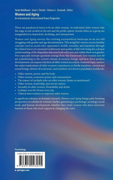 "With its extensive current literature reviews, its superior writing, and its attempt to offer suggestions for empowerment and agency of older women, it is a rare find. As such, I strongly recommend that feminist scholars, gerontologists, activists, advocates and policy makers read and learn from this book. Professors teaching classes on sociology, psychology of women, gender, women's studies, and gerontology would do well to require Women and Aging ... as a primary source for students' reading assignments." (Carol A. Gosselink, PsycCRITIQUES, Vol. 60 (34), August, 2015)