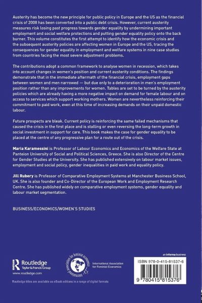 Austerity has become the new principle for public policy in Europe and the US as the financial crisis of 2008 has been converted into a public debt crisis. However, current austerity measures risk losing past progress towards gender equality by undermining important employment and social welfare protections and putting gender equality policy onto the back burner. This volume constitutes the first attempt to identify how the economic crisis and the subsequent austerity policies are affecting women in Europe and the US, tracing the consequences for gender equality in employment and welfare systems in nine case studies from countries facing the most severe adjustment problems.
