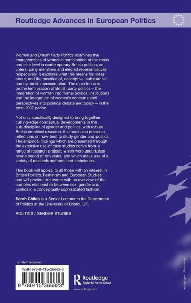 Women and British Party Politics examines the characteristics of women's participation at the mass and elite level in contemporary British politics; as voters, party members and elected representatives respectively. It explores what this means for ideas about, and the practice of, descriptive, substantive and symbolic representation. The main focus is on the feminization of British party politics - the integration of women into formal political institutions and the integration of women's concerns and perspectives into political debate and policy - in the post-1997 period. Not only specifically designed to bring together cutting-edge conceptual developments in the sub-discipline of gender and politics, with robust British empirical research, this book also presents reflections on how best to study gender and politics. The empirical findings which are presented through the extensive use of case studies derive from a range of research projects which were undertaken over a period of ten years, and which make use of a variety of research methods and techniques. This book will appeal to all those with an interest in British Politics, Feminism and European Studies; and will provide the reader with an overview of the complex relationship between sex, gender and politics in a conceptually sophisticated fashion.