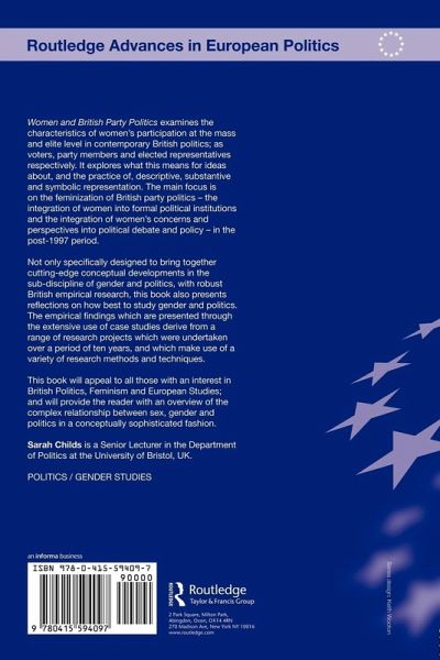 Women and British Party Politics examines the characteristics of women's participation at the mass and elite level in contemporary British politics; as voters, party members and elected representatives respectively. It explores what this means for ideas about, and the practice of, descriptive, substantive and symbolic representation. The main focus is on the feminization of British party politics - the integration of women into formal political institutions and the integration of women's concerns and perspectives into political debate and policy - in the post-1997 period. Not only specifically designed to bring together cutting-edge conceptual developments in the sub-discipline of gender and politics, with robust British empirical research, this book also presents reflections on how best to study gender and politics. The empirical findings which are presented through the extensive use of case studies derive from a range of research projects which were undertaken over a period of ten years, and which make use of a variety of research methods and techniques. This book will appeal to all those with an interest in British Politics, Feminism and European Studies; and will provide the reader with an overview of the complex relationship between sex, gender and politics in a conceptually sophisticated fashion.