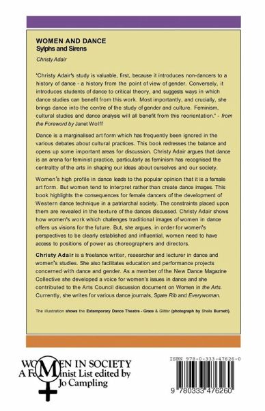 A broad-ranging account of women's roles and experience in dance, which demolishes the myth that dance is a female art form by demonstrating the way in which it is dominated by male managers, choreographers and directors. While most dancers are women, for the most part they interpret male-constructed images rather than create their own. This is not inevitable, however, the author argues; dance is a possible arena for feminist practice and women's liberation.