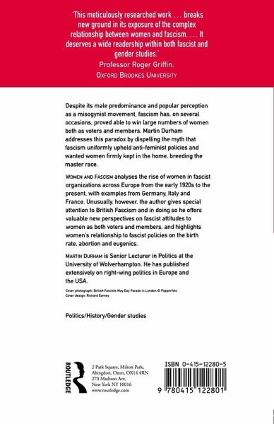 This seminal book challenges the common assumption that fascism is a misogynist movement which has tended to exclude women. Using examples from Germany, Italy and France, Durham analyses the rise of women in fascist organizations across Europe from the early twenties to the present. Unusually, however, the author focuses on British fascism and in doing so he offers valuable new perspectives on fascist attitudes to women. Offering interesting examples of women training in armed combat, and more generally as voters and members of fascist organizations, he highlights women's relationship to fascist policies on birth rate, abortion and eugenics.