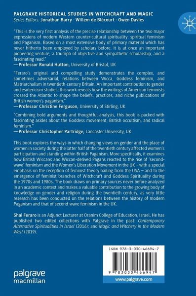 This book explores the ways in which changing views on gender and the place of women in society during the latter half of the twentieth century affected women's participation and standing within British Paganism. More specifically, it examines how British Wiccans and Wiccan-derived Pagans reacted to the rise of 'second-wave' feminism and the Women's Liberation Movement in the UK - with a special emphasis on the reception of feminist theory hailing from the USA - and to the emergence of feminist branches of Witchcraft and Goddess Spirituality during the 1970s and 1980s. The book draws on primary sources never before analyzed in an academic context and makes a valuable contribution to the growing body of knowledge on gender and religion during the twentieth century, as very little research has been conducted on the relations between the history of modern Paganism and that of second-wave feminism in the UK.