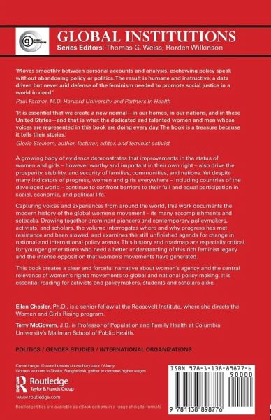 A growing body of evidence demonstrates that improvements in the status of women and girls - however worthy and important in their own right - also drive the prosperity, stability, and security of families, communities, and nations. Yet despite many indicators of progress, women and girls everywhere - including countries of the developed world - continue to confront barriers to their full and equal participation in social, economic, and political life. Capturing voices and experiences from around the world, this work documents the modern history of the global women's movement - its many accomplishments and setbacks. Drawing together prominent pioneers and contemporary policymakers, activists, and scholars, the volume interrogates where and why progress has met resistance and been slowed, and examine the still unfinished agenda for change in national and international policy arenas. This history and roadmap are especially critical for younger generations who need a better understanding of this rich feminist legacy and the intense opposition that women's movements have generated. This book creates a clear and forceful narrative about women's agency and the central relevance of women's rights movements to global and national policy-making.. It is essential reading for activists and policymakers, students and scholars alike.