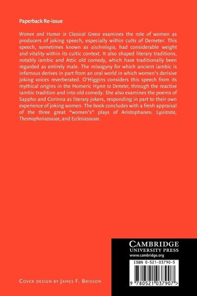 Women and Humor in Classical Greece examines the role of women as producers of joking speech, especially within cults of Demeter. This speech, sometimes known as aischrologia, had considerable weight and vitality within its cultic context. It also shaped literary traditions, notably iambic and Attic old comedy that has traditionally been regarded as entirely male. The misogyny for which ancient iambic is infamous derives in part from an oral world in which women's derisive joking voices reverberated. O'Higgins considers this speech from its mythical origins in the Homeric Hymn to Demeter, through the reactive iambic tradition and into old comedy. She also examines the poems of Sappho and Corinna as literary jokers, responding in part to their own experience of joking women. The book concludes with a fresh appraisal of the three great 'women's' plays of Aristophanes: Lysistrata, Thesmophoriasouzae, and Ecclesiazousae.