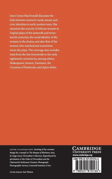 Joyce Green MacDonald discusses the links between women's racial, sexual, and civic identities in early modern texts. She examines the scarcity of African women in English plays of the sixteenth and seventeenth centuries, the racial identity of the women in the drama and also that of the women who watched and sometimes wrote the plays. The coverage also includes texts from the late fourteenth to the early eighteenth centuries, by, among others, Shakespeare, Jonson, Davenant, the Countess of Pembroke, and Aphra Behn. MacDonald articulates many of her discussions of early modern women's races through a comparative method, using insights drawn from critical race theory, women's history, and contemporary disputes over canonicity, multiculturalism, and Afrocentrism. Seeing women as identified by their race and social standing as well as by their sex, this book will add depth and dimension to discussions of women's writing and of gender in Renaissance literature.