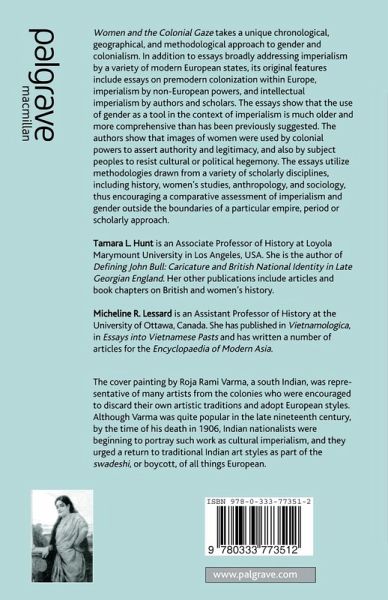 Notes on the Contributors Introduction: Women and the Colonial Gaze; T.L.Hunt PART I: COLONIALISM WITHIN EUROPE Cartimandua, Boudicca, and Rebellion: British Queens and Roman Colonial Views; J.Crawford Between Whipping and Slavery: Double Jeopardy Against Mudejar Women in Medieval Spain; I.B.O'Connor Greece in Chains: Philhellenism to the Rescue of a Damsel in Distress; K.E.Fleming Wild Irish Women: Gender, Politics and Colonialism in the Nineteenth Century; T.L.Hunt PART II: COLONIALISM IN THE AMERICAS French Views of Native American Women in the Early Modern Era: The Tupinamba of Brazil; L.Fishman Women as Symbols of Disorder in Early Rhode Island; R.W.Herndon Native Women and State Legislation in Mexico and Canada: The Agrarian Law and the Indian Act; V.V.Garcia The 'Male City' of Havana: The Coexisting Logics of Colonialism, Slavery and Patriarchy in Nineteenth-Century Cuba; L.Martinez-Fernandez Imperial Eyes, Gendered Views: Concepcion Gimeno Re-writes the Aztecs at the End of the Nineteenth Century; C.Ramos-Escandon PART III: COLONIALISM IN ASIA AND AFRICA The Indian Other: Reactions of Two Anglo-Indian Women Travel Writers, Eliza Fay and A.U.; N.Chaudhuri Image and Reality: Indian Women, Colonial and Post-Colonial Discourse on Empowerment and Victimology; K.Ray Civilizing Women: French Colonial Perceptions of Vietnamese Womenhood and Motherhood; M.R.Lessard Social Construction of Idealized Images of Women in Colonial Korea: the 'New Woman' versus 'Motherhood': J.Shin Education for Liberation or Domestication? Female Education in Colonial Swaziland; M.Z.Booth Women, Gender History, and Imperial Ethiopia; T.Fernyhough & A.Fernyhough Endnotes Index
