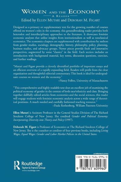 This reader is designed for use as a primary or supplementary text for courses on women's role in the economy. Both interdisciplinary and heterodox in its approach, it showcases feminist economic analyses that utilize insights from institutionalism as well as neoclassical economics. Including both classic and newer selections from a broad range of areas, each section includes an introduction with background material, as well as discussion questions, exercises, and lists of key terms an further readings.