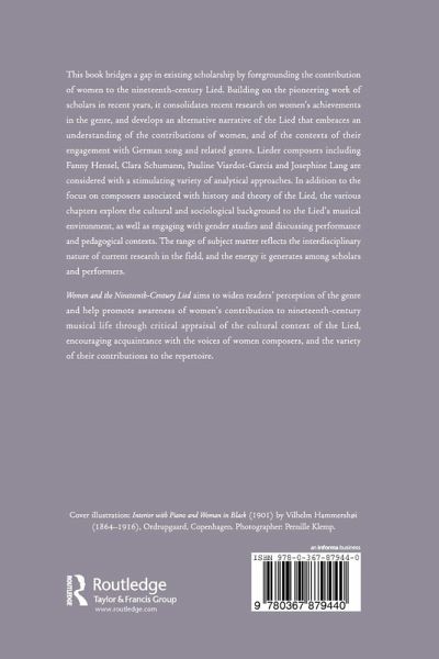 This book bridges a gap in existing scholarship by foregrounding the contribution of women to the nineteenth-century Lied. Building on the pioneering work of scholars in recent years, it consolidates recent research on women's achievements in the genre, and develops an alternative narrative of the Lied that embraces an understanding of the contributions of women, and of the contexts of their engagement with German song and related genres. Lieder composers including Fanny Hensel, Clara Schumann, Pauline Viardot-Garcia and Josephine Lang are considered with a stimulating variety of analytical approaches. In addition to the focus on composers associated with history and theory of the Lied, the various chapters explore the cultural and sociological background to the Lied's musical environment, as well as engaging with gender studies and discussing performance and pedagogical contexts. The range of subject matter reflects the interdisciplinary nature of current research in the field, and the energy it generates among scholars and performers. Women and the Nineteenth-Century Lied aims to widen readers' perception of the genre and help promote awareness of women's contribution to nineteenth-century musical life through critical appraisal of the cultural context of the Lied, encouraging acquaintance with the voices of women composers, and the variety of their contributions to the repertoire.