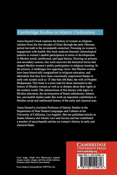 Asma Sayeed's book explores the history of women as religious scholars from the first decades of Islam through the early Ottoman period. Focusing on women's engagement with had¿th, this book analyzes dramatic chronological patterns in women's had¿th participation in terms of developments in Muslim social, intellectual and legal history. It challenges two opposing views: that Muslim women have been historically marginalized in religious education, and alternately that they have been consistently empowered thanks to early role models such as '¿'isha bint Ab¿ Bakr, the wife of the Prophet Muhammad. This book is a must-read for those interested in the history of Muslim women as well as in debates about their rights in the modern world. The intersections of this history with topics in Muslim education, the development of Sunn¿ orthodoxies, Islamic law and had¿th studies make this work an important contribution to Muslim social and intellectual history of the early and classical eras.