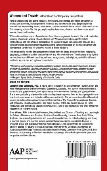 Women and Travel: Historical and Contemporary Perspectives is a fascinating look at the behavior, motivations, experiences, and needs of women as tourists and travellers, drawing on both historic and contemporary eras. Surprisingly little research has explored key issues, experiences, and opportunities in the context of women's travel. This revealing volume fills this gap, exploring the discourses, debates, and discussions about women, travel, and tourism.