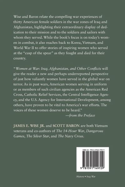 Wise and Baron relate the compelling war experiences of thirty American female soldiers in the war zones of Iraq and Afghanistan, highlighting their extraordinary display of dedication to their mission and to the soldiers and sailors with whom they served. While the book's focus is on today's women in combat, it also reaches back to Korea, Vietnam and World War II to offer stories of inspiring women who served at the cusp of the spear as they fought and died for their country.