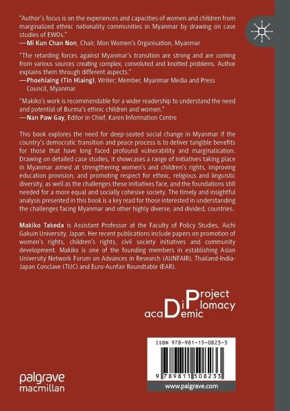This book explores the need for deep-seated social change in Myanmar if the country's democratic transition and peace process is to deliver tangible benefits for those that have long faced profound vulnerability and marginalisation. Drawing on detailed case studies, it showcases a range of initiatives taking place in Myanmar aimed at strengthening women's and children's rights, improving education provision, and promoting respect for ethnic, religious and linguistic diversity, as well as the challenges these initiatives face, and the foundations still needed for a more equal and socially cohesive society. The timely and insightful analysis presented in this book is a key read for those interested in understanding the challenges facing Myanmar and other highly diverse, and divided, countries.