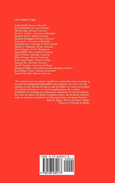 Contributors: Martha Nussbaum, Marty Chen, Susan Wolf, Jonathan Glover, Onora O'Neill, David Crocker, Hilary Putnam, Linda Alcoff, Amartya Sen, Susan Moller Okin, Ruth Anna Putnam, Cass R.Sunstein, Christine M.Korsgaard, Catherine Lutz, Xiaorong Li, Margarita M.Valdes, Nkiru Nzegwu