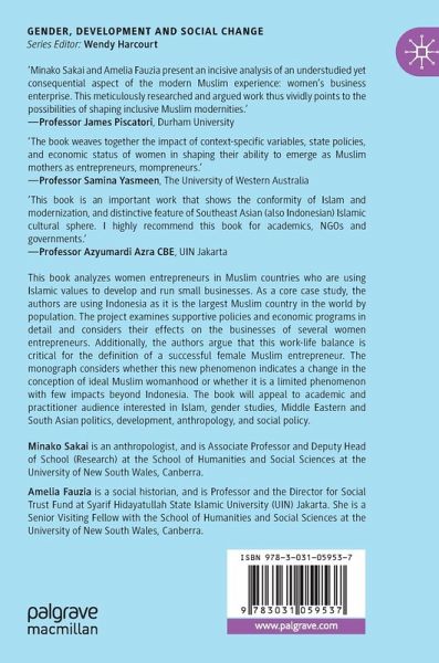 This book analyzes women entrepreneurs in Muslim countries who are using Islamic values to develop and run small businesses. As a core case study, the authors are using Indonesia as it is the largest Muslim country in the world by population. The project examines supportive policies and economic programs in detail and considers their effects on the businesses of several women entrepreneurs. Additionally, the authors argue that this work-life balance is critical for the definition of a successful female Muslim entrepreneur. The monograph considers whether this new phenomenon indicates a change in the conception of ideal Muslim womanhood or whether it is a limited phenomenon with few impacts beyond Indonesia. The book will appeal to academic and practitioner audience interested in Islam, gender studies, Middle Eastern and South Asian politics, development, anthropology, and social policy.