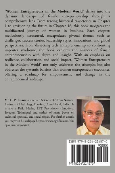 "Women Entrepreneurs in the Modern World" delves into the dynamic landscape of female entrepreneurship through a comprehensive lens. From tracing historical trajectories in Chapter 1 to envisioning the future in Chapter 16, this book navigates the multifaceted journey of women in business. Each chapter, meticulously structured, encapsulates pivotal themes such as challenges, success stories, leadership styles, innovations, and global perspectives. From dissecting tech entrepreneurship to confronting imposter syndrome, the book explores the nuances of female entrepreneurship with depth and insight. With an emphasis on resilience, collaboration, and social impact, "Women Entrepreneurs in the Modern World" not only celebrates the triumphs but also addresses the systemic barriers that women entrepreneurs encounter, offering a roadmap for empowerment and change in the entrepreneurial landscape.