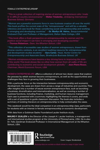 Women Entrepreneurs offers a collection of almost two dozen cases that explore the process by which women become entrepreneurs, as well as the opportunities and challenges they face in growing their businesses. With a particular focus on the intersection between entrepreneurship and economic development, the cases are drawn from across a range of industries and countries. They offer insights into a number of issues women entrepreneurs face, such as launching a business, diversification and internationalization, as well as covering a number of business functions, including finance, marketing and human resource management. Each case is presented with a summary highlighting the themes it covers, and ends with a set of questions to guide classroom discussion. The book also includes a summary of existing literature on entrepreneurship to help contextualize the cases. This casebook would be the ideal companion in an entrepreneurship class, particularly for students with an interest in female entrepreneurship or economic development. With data from a Goldman Sachs/Lauder Institute study.