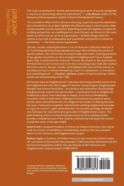 'Women, Gender, and Enlightenment is one of those rare collections that has it all. Combining searching historiographical essays with scholarly discussions of specific authors, this volume has an exceptionally wide reach, covering questions of sex, gender and politics as they emerged in Enlightenment France, England, Spain, Italy, Scotland and the American Colonies. But thanks to the authoritative introductions to each section and to the two concluding essays that take stock of the entire volume, Women, Gender, and Enlightenment does not feel uneven or miscellaneous but is instead animated by a spirit of collaboration. A marvellous and compelling book.' - Claudia L Johnson, author of Equivocal Beings: Politics, Gender and Sentimentality in the 1790s