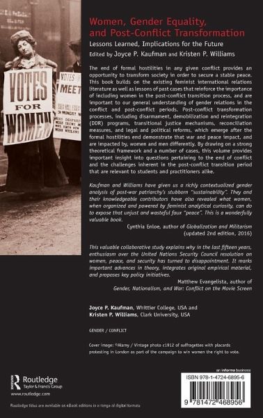 The end of formal hostilities in any given conflict provides an opportunity to transform society in order to secure a stable peace. This book builds on the existing feminist international relations literature as well as lessons of past cases that reinforce the importance of including women in the post-conflict transition process, and are important to our general understanding of gender relations in the conflict and post-conflict periods. Post-conflict transformation processes which emerge after the formal hostilities end demonstrate that war and peace impact, and are impacted by, women and men differently.