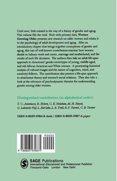 How women decide to balance work, marriage and motherhood; what happens as they age as a result of their decisions; and gender stereotypes of young, middle-aged and older women are among the topics examined in this volume. Relating research on older women to theoretical and conceptual developments in the psychology of adult development and ageing, contributions also include a life-span approach to attachment theory. In addition, a penetrating historical analysis of cultural images of the nature of cognition, mind and creativity is presented, and gender identity continuity and change in midlife explored. The social convey and support-efficacy models are also used to describe causal mechanisms through which social relations and gender differences in social relations may develop.
