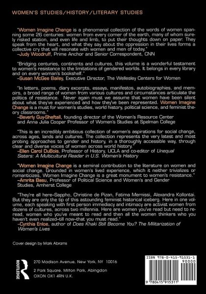 Organized around themes of concern to contemporary readers, this global, multicultural anthology presents women from 30 countries, speaking from their vivid, diverse life experiences. "Women Imagine Change" shows how women all over the world, across a span of 2,600 years, have found ways to resist oppression and gain power over their lives.
