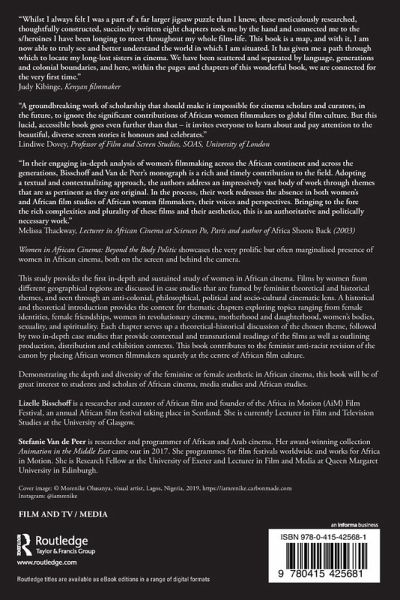Women in African Cinema: Beyond the Body Politic showcases the very prolific but often marginalised presence of women in African cinema, both on the screen and behind the camera. This book provides the first in-depth and sustained examination of women in African cinema. Films by women from different geographical regions are discussed in case studies that are framed by feminist theoretical and historical themes, and seen through an anti-colonial, philosophical, political and socio-cultural cinematic lens. A historical and theoretical introduction provides the context for thematic chapters exploring topics ranging from female identities, female friendships, women in revolutionary cinema, motherhood and daughterhood, women's bodies, sexuality, and spirituality. Each chapter serves up a theoretical-historical discussion of the chosen theme, followed by two in-depth case studies that provide contextual and transnational readings of the films as well as outlining production, distribution and exhibition contexts. This book contributes to the feminist anti-racist revision of the canon by placing African women filmmakers squarely at the centre of African film culture. Demonstrating the depth and diversity of the feminine or female aesthetic in African cinema, this book will be of great interest to students and scholars of African cinema, media studies and African studies.