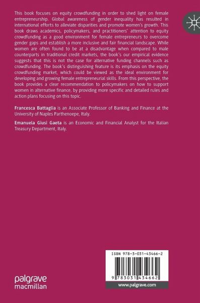 This book focuses on equity crowdfunding in order to shed light on female entrepreneurship. Global awareness of gender inequality has resulted in international efforts to alleviate disparities and promote women's growth. This book draws academics, policymakers, and practitioners' attention to equity crowdfunding as a good environment for female entrepreneurs to overcome gender gaps and establish a more inclusive and fair financial landscape. While women are often found to be at a disadvantage when compared to male counterparts in traditional credit markets, the book's our empirical evidence suggests that this is not the case for alternative funding channels such as crowdfunding. The book's distinguishing feature is its emphasis on the equity crowdfunding market, which could be viewed as the ideal environment for developing and growing female entrepreneurial skills. From this perspective, the book provides a clear recommendation to policymakers on how to support women in alternative finance, by providing more specific and detailed rules and action plans focusing on this topic.