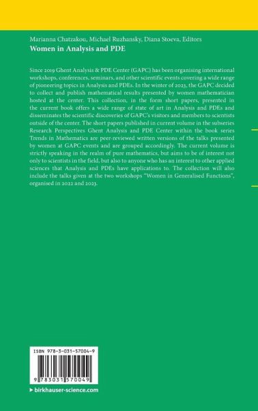 Since 2019 Ghent Analysis & PDE Center (GAPC) has been organising international workshops, conferences, seminars, and other scientific events covering a wide range of pioneering topics in Analysis and PDEs. In the winter of 2023, the GAPC decided to collect and publish mathematical results presented by women mathematician hosted at the center. This collection, in the form short papers, presented in the current book offers a wide range of state of art in Analysis and PDEs and disseminates the scientific discoveries of GAPC's visitors and members to scientists outside of the center. The short…mehr