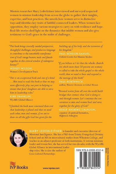 Christianity Today 2020 Book of the Year Award, Missions/Global Church Women have advanced God's mission throughout history and around the world. But women often face particular obstacles in ministry. What do we need to know about how women thrive? Mission researcher Mary Lederleitner interviewed and surveyed ninety-five respected women in mission leadership from thirty countries to gather their insights, expertise, and best practices. She unveils how women serve in distinctive ways and identifies key traits of faithful connected leaders. When women face opposition based on their gender, they employ various strategies to carry on with resilience and hope. Real-life stories and case studies shed light on dynamics that inhibit women and also give testimony to God's grace and empowerment in the midst of challenges. Women and men will find resources here for partnering together in effective ministry and mission. Organizations can help women flourish through advocacy, mentoring, and addressing structural issues. Wherever God has invited you to serve and lead, discover that you are not alone as you answer the call.