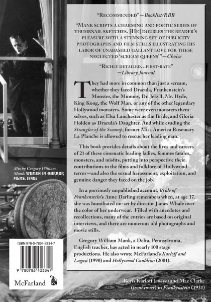 They had more in common than just a scream, whether they faced Dracula, Frankenstein's Monster, the Mummy, Dr. Jekyll, Mr. Hyde, King Kong, the Wolf Man, or any of the other legendary Hollywood monsters. Some were even monsters themselves, such as Elsa Lanchester as the Bride, and Gloria Holden as Dracula's Daughter. And while evading the Strangler of the Swamp, former Miss America Rosemary La Planche is allowed to rescue her leading man. This book provides details about the lives and careers of 21 of these cinematic leading ladies, femmes fatales, monsters, and misfits, putting into perspective their contributions to the films and folklore of Hollywood terror--and also the sexual harassment, exploitation, and genuine danger they faced on the job. In a previously unpublished account, Bride of Frankenstein's Anne Darling remembers when, at age 17, she was humiliated on-set by director James Whale over the color of her underwear. Filled with anecdotes and recollections, many of the entries are based on original interviews, and there are numerous old photographs and movie stills.