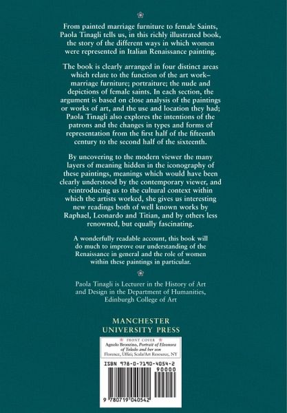 Presents a general overview of women as subject-matter in Italian Renaissance painting. The text is divided into five chapters, which cover the following themes: portraiture; the nude; depiction of female saints; and women as protaganists of narratives in paintings for domestic furniture.