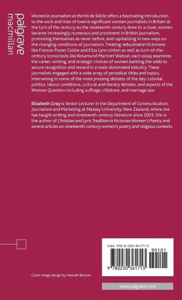 Acknowledgements Notes on Contributors Introduction; F.E.Gray Making More than a Name: Eliza Lynn Linton and the Commodification of the Woman Journalist at the Fin de Siecle; L.A.Bache 'Her usual daring style': Feminist New Journalism, Pioneering Women, and Traces of Frances Power Cobbe; S.Hamilton Edith Simcox's Diptych: Sexuality and Textuality; B.Ayres Alice Meynell, Literary Reviewing, and the Cultivation of Scorn; F.E.Gray Humanitarian Journalism: The Career of Lady Isabella Somerset; M.Tusan Flora Shaw and the Times: Becoming a Journalist, Advocating Empire; D.O.Helly 'Making a Name for Whistler': Elizabeth Robins Pennell as a New Art Critic; K.Morse Jones 'A Fair Field and No Favour': Hulda Friederichs, the Interview, and the New Woman; F.Dillane Representing the Professional Woman: The Celebrity Interviewing of Sarah Tooley; T.Doughty Ella Hepworth Dixon: Storming the Bastille, or Taking it by Stealth?; V.Fehlbaum Journalism's Iconoclast: Rosamund Marriott Watson ('Graham R. Tomson'); L.K.Hughes Anti/Feminism: Frances Low and the Issue of Women's Work at the Fin de Siecle; A.Easley Complete Bibliography Index