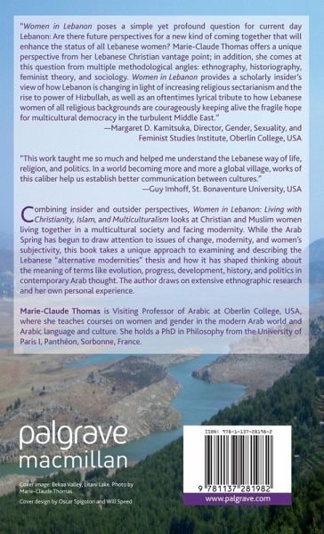Combining insider and outsider perspectives, Women in Lebanon looks at Christian and Muslim women living together in a multicultural society and facing modernity. While the Arab Spring has begun to draw attention to issues of change, modernity, and women's subjectivity, this manuscript takes a unique approach to examining and describing the Lebanese "alternative modernities" thesis and how it has shaped thinking about the meaning of terms like evolution, progress, development, history, and politics in contemporary Arab thought. The author draws on extensive ethnographic research, as well as her own personal experience.