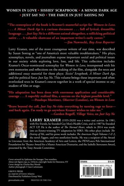 Larry Kramer has been described by Susan Sontag as "one of America's most valuable troublemakers." As Frank Rich writes in his Foreword to this new collection of writings for the screen and stage, "his plays are almost journalistic in their observation of the fine-grained documentary details of life ... that may well prove timeless." The title work, the Oscar-nominated screenplay for Women in Love, is a movie "as sensuous as anything you've probably ever seen on film" (The New York Times). The screenplay is accompanied by Kramer's reflections on the history of the production, sure to be of interest to any student of film. This volume also includes several early plays, Sissies' Scrapbook, A Minor Dark Age, and the political farce Just Say No, illuminating the development of one of our most important literary figures. "Since his screenplay for Women in Love, Kramer has been a prophet of psychic health and catastrophe among us." -- from The American Academy of Arts and Letters citation