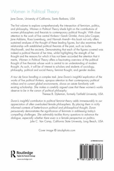 The first volume to explore comprehensively the intersection of feminism, politics, and philosophy, Women in Political Theory sheds light on the contributions of women philosophers and theorists to contemporary political thought. With close attention to the work of five central thinkers-Sarah Grimké, Anna Julia Cooper, Jane Addams, Rosa Luxemburg and Hannah Arendt-this book not only offers sustained analyses of the thought of these leading figures, but also examines their relationship with established political theorists of the past, such as Locke, Machiavelli, and the ancients. Demonstrating that each of the figures covered was indeed a political theorist of her time, whilst highlighting the strength of her thought and the reasons for which it has not been accorded the attention that it merits, Women in Political Theory offers a fascinating overview of the political thought of five theorists whose work is central to an understanding of modern thought. As such, it will be of interest to scholars and students of sociology, philosophy, political and social theory, feminist thought, and gender studies.