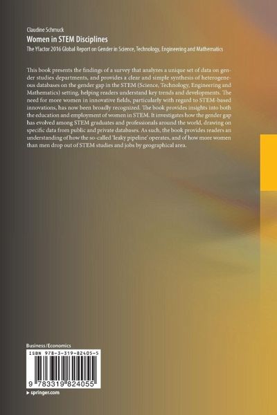 This book presents the findings of a survey that analyzes a unique set of data in science and technolog and provides a clear and simple synthesis of heterogeneous databases on the gender gap in the STEM (Science, Technology, Engineering and Mathematics) setting, helping readers understand key trends and developments. The need for more women in innovative fields, particularly with regard to STEM-based innovations, has now been broadly recognized. The book provides insights into both the education and employment of women in STEM. It investigates how the gender gap has evolved among STEM graduates and professionals around the world, drawing on specific data from public and private databases. As such, the book provides readers an understanding of how the so-called 'leaky pipeline' operates, and of how more women than men drop out of STEM studies and jobs by geographical area.