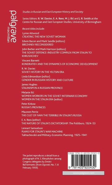 'These eleven tightly argued chapters go a considerable way to remedy the neglect of both women's experience and the gendered nature of Khrushchev's rule. It is an admirably coherent collection which should encourage further research.' - Jane McDermid, The Slavonic and East European Review